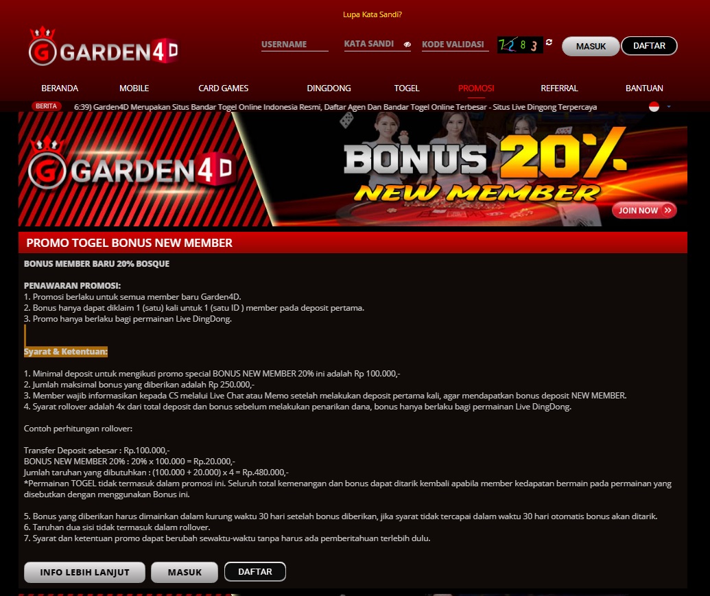 PROMO TOGEL BONUS NEW MEMBER Situs Live Dingdong Terpercaya Garden4D